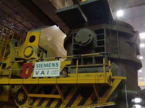 12月19日,马钢四钢轧大包回转台进行静态超荷载试验,荷载重量达到625吨,经过多项功能受检和指标测试反映良好,超荷载试验取得圆满成功。 马钢四钢轧连铸项目大包回转台,是马钢四钢轧工程安装的最大的单体设备,直径5.52米,回转半径6.5米,高10.6米,提升高度0.8米,本体自重334吨,设计年产量240万吨,该设备安装完成后,成功进行了单体试车。这次超负荷试验是对大包台两边平衡加载钢包和钢锭板材,最高荷载量达到625吨,超出正常荷载量145吨,负载后大包台各项性能良好,各项读数反映正常,试验结果显示,大包回转台已具备试生产条件,超荷载试验取得圆满成功。