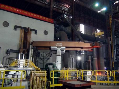 下午一点四十五分,一辆载有300吨钢水的钢包车徐徐进入1#LF精炼区,只见三根硕大的电击棒插入钢包,顿时电击声大作震耳欲聋,钢花四溅映红炉台。经过约30分钟的精炼过程,钢水纯度及各项指标达到设计要求,热试结果显示,1#LF具备试生产条件,热负荷试车取得圆满成功。