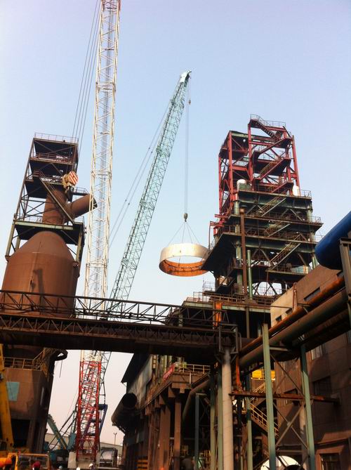 该工程工期紧,施工质量要求高,冶金工程技术公司机装三处精心编制施工方案,严格组织施工程序,充分发扬“敬业 忠诚 团结 进取”的企业精神,克服了施工场地狭小,交叉作业多等困难,施工过程中合理组织施工工序、严抓安全质量管理,对工程关键施工节点加以控制,按照“24小时工作法”要求,强化服务态度,减少推诿扯皮,力争7#高炉在5月7号前顺利烘炉,为后续工程打下坚实基础,目前,7#高炉大修工程正在紧张进行中。