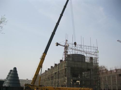本次吊装的钢结构料仓为烧结区域配料室料仓,料仓上部直径6.8m,下部直径3m,长度8.8m,重23T。日照铸福项目钢结构是由甲方提供材料,我方进行制作和安装。在钢结构制作过程中,项目部严把质量关,保证制作出来的钢结构全部符合规范和图纸要求。在吊装前,项目部与现场施工人员进行了方案评审和详细的技术交底,仔细检查解决各环节施工难点,确保了吊装一次成功,赢得了业主的一致好评。