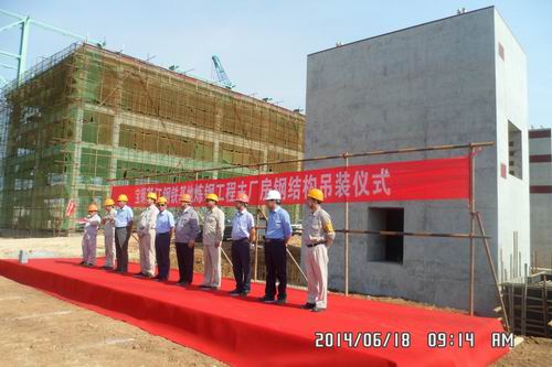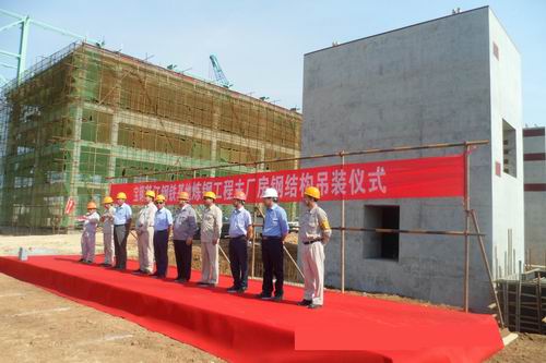 5月18日9点28分,伴随着宝钢湛江钢铁副总指挥刘代德的一声 “起吊令”,主厂房钢结构吊装主吊车4000t·m塔吊开动,随着转炉跨1/J列轴线GZ31-1钢柱缓缓就位,中国十七冶湛江炼钢工程主厂房钢结构安装工程揭开了帷幕。