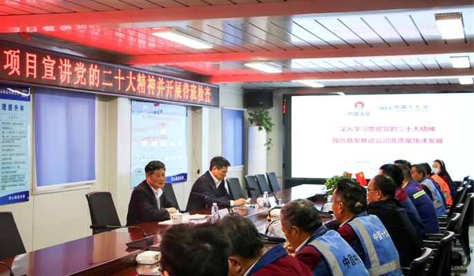 喻世功书记以《深入学习贯彻党的二十大精神 踔厉奋发推动公司高质量快速发展》为题,在项目部为一线管理人员宣讲了党的二十大精神。他从贯通“五个牢牢把握”,全面准确学习领会核心要义;突出“七个精准聚焦”,从严从细抓实抓好学习宣贯;抓好“五项重点任务”,学用结合落实重大决策部署三个方面进行宣讲。