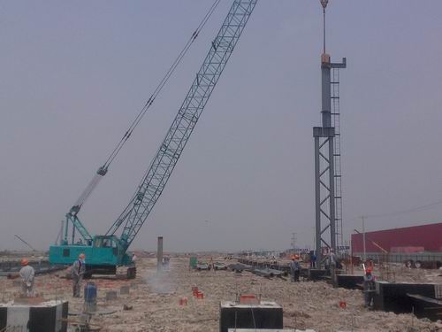 5月31日上午,随着一生哨响,一根钢柱在吊车的提升下稳稳地插入土建基础,这标志着由中国十七冶集团冶金工程技术公司承建的番禹珠江钢管(连云港)有限公司二六分厂联体厂房工程钢结构安装正式拉开序幕。