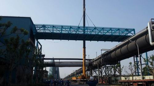 该条输送线通廊安装是整个料场改造项目中难度最大施工内容,在全体参建人员的努力下顺利完工,展现了十七冶精湛的技术力量和组织管理能力。