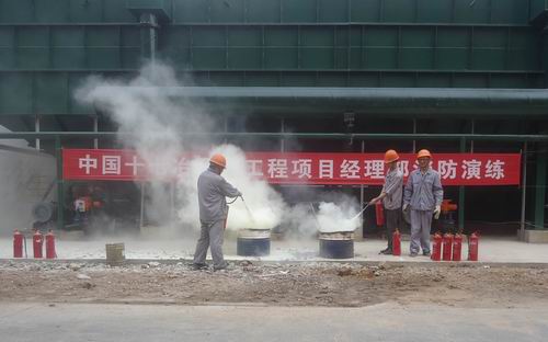 下午四点,马钢工程项目部四钢轧连铸厂房工地现场,一场消防演练拉开序幕,随着消防演练命令的下达,象征着火警的两堆熊熊燃烧的火焰,顿时被8台灭火器喷击熄灭,演练过程干净利落,消防演练取得满成功。通过实战演练,员工处事不惊,果断有序处置火警的能力得到了锻炼。