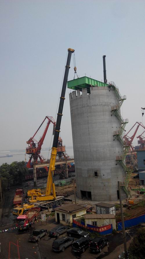 该工程工期紧,任务重,施工场地狭小,仓顶钢结构平台吊装严重制约着除尘基础框架及风机基础施工,特别是南京青奥会即将召开,对环境保护要求非常高。为确保工程顺利推进,在公司领导的关怀下,项目部统筹安排,提前做好施工策划,钢结构制作加班加点,确保每一榀构件都不影响现场施工,机装一处全体人员发扬十七冶人勇攀高峰的拼搏精神,以“一天也不耽误、一天也不懈怠”的进取精神,以实际行动践行着“高效严谨、精细务实”的企业作风和“24小时工作法”,按时完成仓顶钢平台组装工作,确保了施工节点,得到业主及建立单位的一致好评。