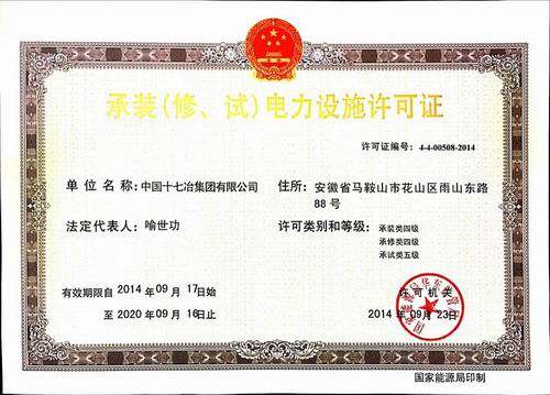 日前,国家能源局华东监管局向中国十七冶集团冶金工程技术公司颁发了承装(修、试)电力设施许可证,为公司进入电力行业建设市场奠定了基础。