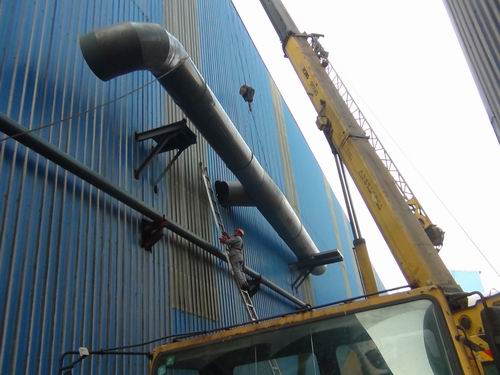 11月6日上午,马钢四钢轧铁合金仓库除尘系统安装现场,随着吊车的长臂徐徐启动,逐步升高,一节节长14米的钢结构除尘管道,成功与厂房管道支架除尘管道精准对接,拉开了马钢四钢轧铁合金仓库除尘管道系统吊装序幕。