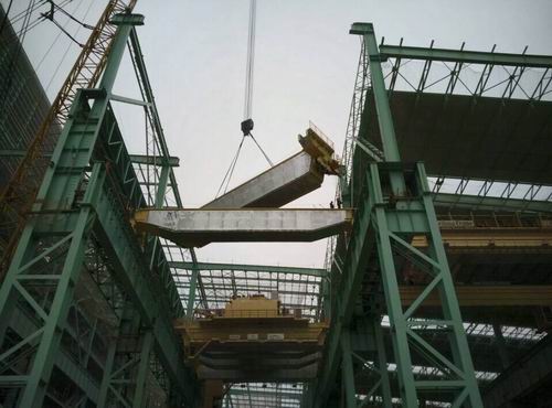 1月27日上午,由中国十七冶集团承建的宝钢湛江炼钢主体工程钢水接收跨第二台520/100t行车顺利吊装。