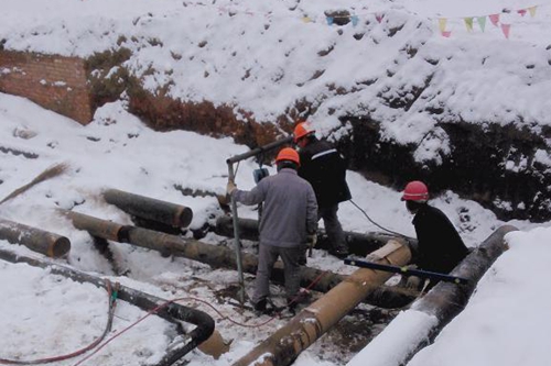 冶金工程技术公司在金徽酒股份有限公司优质酒酿造技改项目管道安装工程中,主要承建酒厂室内、外所有管道施工。在2014年12月份掀起大干热潮后,一个月时间里完成室内外大小管道安装近15km,临近春节,员工在风雪中全身心投入到工作中,全面进入春节前最后冲刺阶段。