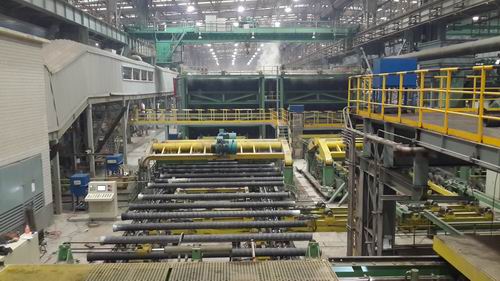 芜湖新兴铸管水冷线机电安装工程设计为大、中、小三条生产线,主要生产管径为DN80mm~300mm、DN350mm~800mm、DN600mm~DN1200mm等不同规格的球墨铸铁管,每条生产线由离心机组、退火炉、精整区、养生炉、包装区等系统组成,施工范围涵盖系统内的工艺钢结构、机械设备及液压系统、工艺管道、电气仪表等专业,水冷线DN80-300生产线由1#~3#离心机、退火炉、精整喷锌、包装喷涂等部分组成。该工程自开始安装以来,项目部积极组织劳动力、合理优化资源,加班加点,积极践行“24小时工作法”,以“一天也不耽误、一天也不懈怠”的工作状态,克服设备进场不及时、设备以散件进场、厂房行车少协调难度大、多家单位交叉作业、边设计边修改、调试完成后配合业主及厂家修改程序及参数等困难,三个月时间顺利完成了该施工任务,是业主水冷线机械设备安装工程史上最成功的案例,展现了良好的企业形象。