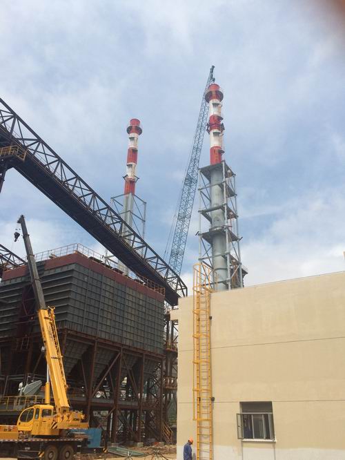 5月22日上午,由中国十七冶集团承建的宝钢湛江钢铁石灰窑工程回转窑区域C8除尘器2#烟囱顺利完成最后一吊。