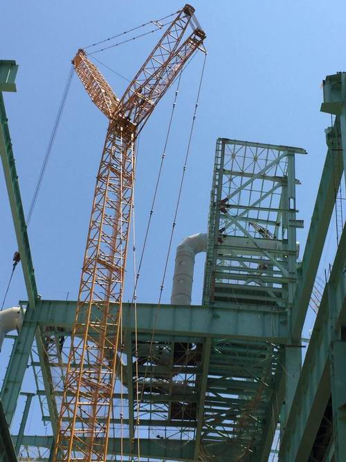 5月27日下午,由中国十七冶集团承建的宝钢湛江炼钢工程二步氧枪平台高层框架吊装就位。