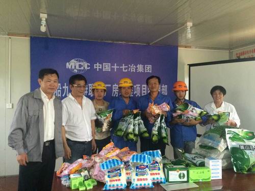 炎炎烈日,在中船九江1#联合厂房工程和扬州恒润高炉工程的施工现场,公司党委书记、工会主席周美初将购买的大量药品、饮料、毛巾、绿豆等防暑降温物品发放到施工一线的广大人员手中并致以了亲切的问候和慰问。一再叮嘱大家,在干好本职工作的同时,一定要劳逸结合,注意安全施工,一定要注意身体,做好抗暑工作,合理安排好作息时间,避开高温时间作业,合理安排饮食。并希望他们在高温的季节里,拿出火一般的热情,克服困难,确保工程建设的顺利进行。拿到慰问品的一线员工和劳务人员个个笑逐颜开,高兴之余纷纷表示除了感谢领导百忙中的慰问外,一定做好自己的本职工作,保质保量的为工程建设出力。
