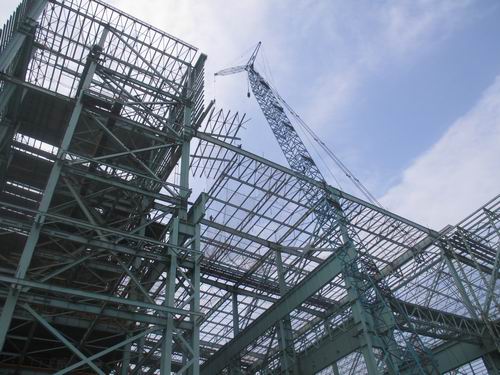 7月12日下午,由中国十七冶集团承建的宝钢湛江炼钢工程HJ跨最后一片屋面顺利吊装就位,至此,宝钢湛江炼钢工程炼钢主厂房屋面全部封闭。