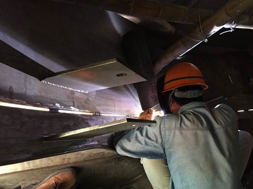 只有具有敏锐独到的眼光,创新的思维,丰富的现场实践经验,才能在施工中用小举措解决大问题。铁包间厂房长120m,宽24m,高31.5m。厂房屋面钢结构安装中要拉安全网。机装二处根据厂房高度,跨度和长度的实际情况,在厂房两端的行列钢柱上选择合适的位置拉上钢丝绳,把安全网串在钢丝绳上固定,随着安装位置的移动,解开固定后沿着钢丝绳平移安全网,既减少了安全网的使用数量,又节约了人工成本,提高了效率。在海水淡化工程施工中,蒸发器管道直径6.88m,管壁厚