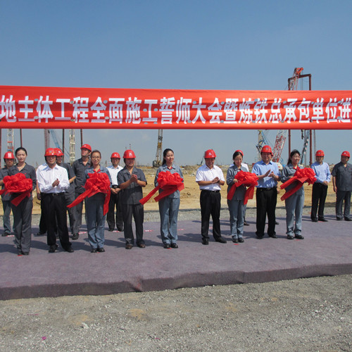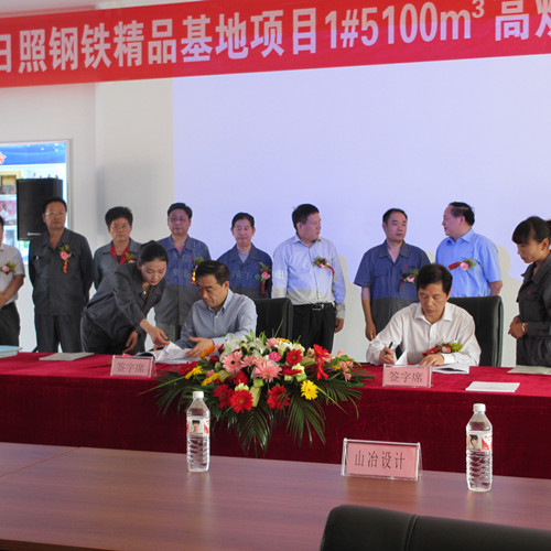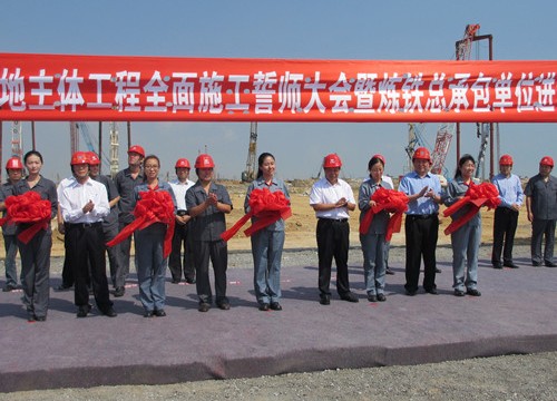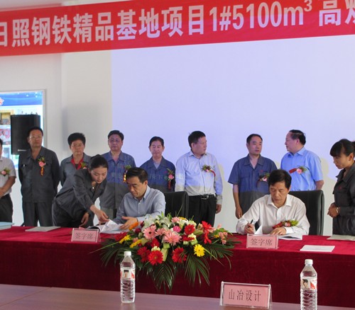 9月16日上午,由中国十七冶集团山东分公司承建的日照钢铁精品基地项目1#5100㎥高炉工程正式签约并举行开工仪式,山钢集团日照公司总经理陈向阳,山东省冶金设计院董事长姚朝胜,中国十七冶集团副总经理蔡进,冶金公司经理王德林,山东分公司副经理吴海华等出席仪式。