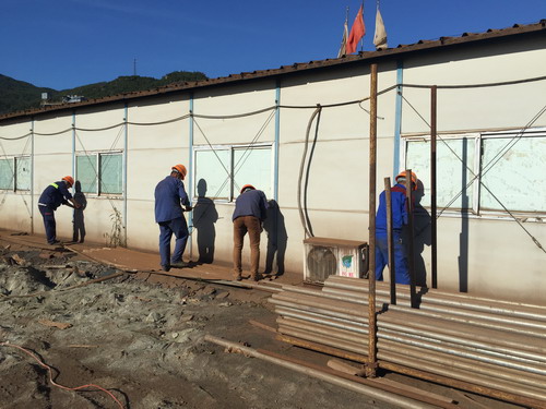 中央气象台2016年7月7日消息,今年第1号台风“尼伯特”(超强台风级)7日8时的中心位于台湾省花莲市东南偏东方420公里的洋面上,正以每小时20公里左右的速度向西偏北方向移动,将于9日早晨到上午登陆福建中北部沿海。针对以上情况,项目部立即组织人员和物资,全力投入防台应急准备工作:由质安部牵头,项目经理带队,对施工现场的脚手架、临时设施、机械设备、临时用电、排水设施进行了全面检查,并立即进行了加固、完善;逐一排查项目部办公大临的隐患,对大临主体进行加固并增设揽风绳;将各部门施工资料转移至安全场所;准备充足的应急物资;严格执行24小时值班制度,安排专人密切关注气象预报。同时,项目部防台抢险应急人员随时处于备战状态,确保安全度过此次台风。
