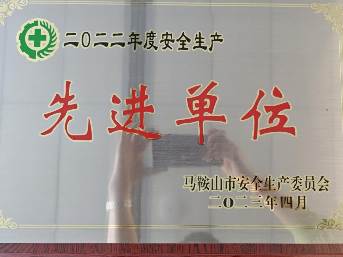 近日,马鞍山市安全生产委员会发布《关于2022年度全市安全生产工作先进集体和先进个人的通报》,我公司荣获“2022年度安全生产先进单位”的称号。