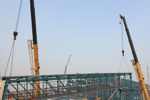 12月15日下午,中国十七冶集团冶金工程技术公司承建的山钢日照钢铁精品基地炼钢主车间工程副原料上料通廊顺利完成第一吊,正式拉开了山钢日照炼钢主车间工程副原料上料通廊安装的帷幕。