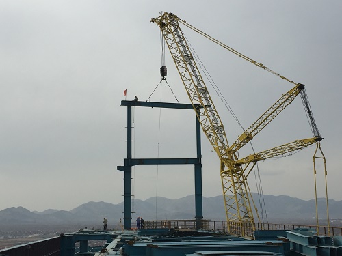 12月24日上午,中国十七冶集团冶金工程技术公司承建山钢日照钢铁精品基地炼钢主车间工程塔楼顶部框架顺利完成第一吊,随着转炉跨H-1/H列7轴线顶部组合框架的缓缓就位,标志着山钢日照炼钢主厂房工程塔楼钢结构安装开始封顶。