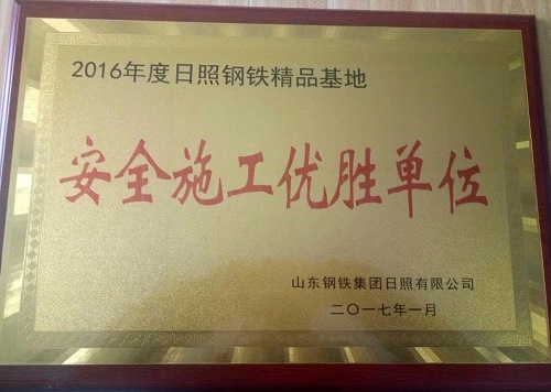 山钢日照钢铁精品基地炼钢主车间项目及日照高炉公辅项目自开工以来,项目部始终牢固树立安全生产理念,扎实开展各项安全检查及隐患排查工作,用铁的手腕抓安全、铁的规章制度促安全、铁的纪律管安全,严防各类安全事故的发生。在十七冶集团和冶金公司的正确领导和支持下,两项目全体工作人员时刻坚持安全生产,平稳实现2016年零事故、零伤亡的安全管理目标。