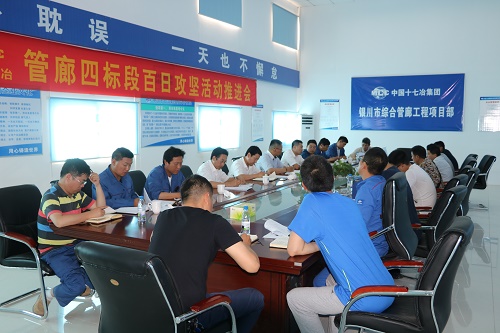为积极响应市政管廊公司关于开展管廊项目“百日攻坚”活动要求,全面推进项目形象进度,7月13日下午,银川管廊项目部召开“奋战七八九、力保大节点”工程推进会,集团公司项目监管部副部长赵峰、冶金公司项目监管部部长朱红刚、项目SPV公司、项目部全体人员、各参建单位负责人等参加会议。