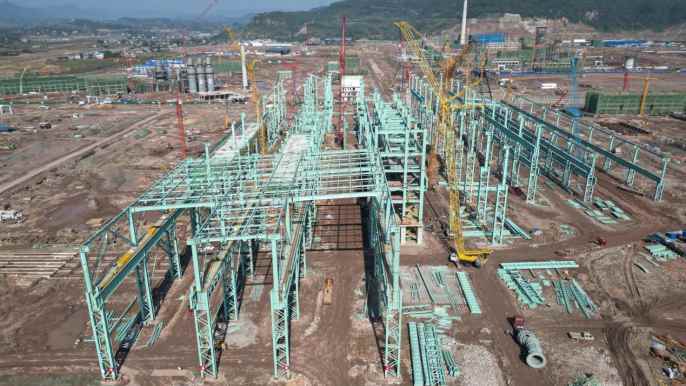 当前,项目土建提钒、炼钢中控楼正在进行内部墙体砌筑、粉刷与水电施工,副原料地下料仓开始地面结构施工,管廊与转运站基础施工基本完成;提钒、炼钢钢结构厂房钢柱已全部安装,行车梁完成1/3以上,提钒加料跨和炼钢加料跨1-4线屋面钢构安装完成,炼钢塔楼已施工至37米,提钒塔楼施工至30米,通廊转运站开始安装;连铸厂房已开始屋面安装;设备汽化烟道开始安装。