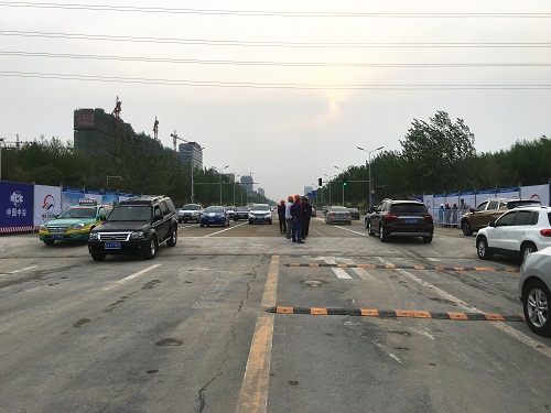 满城街贺兰山路口是银川市金凤区交通主干道,也是自治区六十大庆迎宾要道,项目部依据路口交通运载能力,精心组织策划,对钢便桥方案进行科学论证,在确保安全、质量的前提下,提前20天顺利实现通车,为保障居民出行和工程进度推进奠定坚实基础。贺兰山钢便桥采用双向六车道+两辅道,架设后宽25m,2m(人行道)+6*3.5m(机动车道)+2m(人行道),可承受荷载100吨,充分满足人车通行需要。