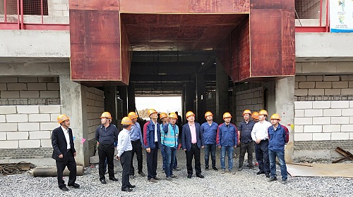 考察团一行实地考察了正在紧张施工中的文体活动中心项目现场,详细了解了工程进展、项目标化建设及文明施工情况,重点考察手球馆钢结构施工情况,并听取了项目经理张来进对手球馆钢结构施工工艺介绍以及公司场馆类项目快速发展的大好形势。考察团对十七冶秉承的“高效严谨、精细务实”的管理作风表示高度赞扬。考察团表示非常欢迎十七冶参与到漳浦县的经济建设中,希望双方进一步加强合作,实现共赢。