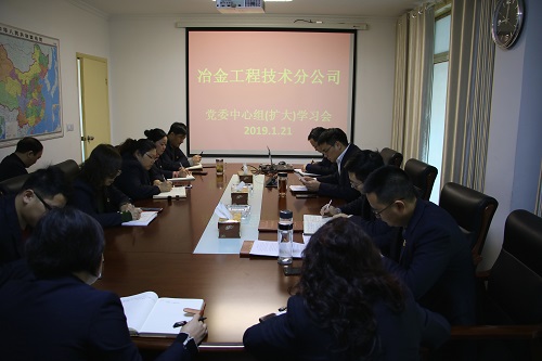 1月21日上午,中国十七冶集团有限公司冶金工程技术分公司召开党委中心组(扩大)学习会,公司领导班子成员,副三总师、经理助理,各部门负责人及工程管理中心主任、书记参加会议。