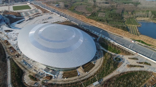 滁州高教科创城文体中心工程建筑采用“祥云”意向设计造型,整体呈现出流线型建筑造型,作为滁州市重点建设工程、省“861”重点项目。自开工以来,安装项目部全体人员克服工期紧、施工作业面困难、天气多变等诸多不利因素,精心组织、积极谋划,顺利完成项目各节点目标,充分发挥“一天也不耽误、一天也不懈怠”的中冶精神,深入践行“24小时工作法”,确保手球馆及游泳馆金属屋面主体工程保质保量、按时完工,为保证工程按期交付使用打下了坚实的基础。