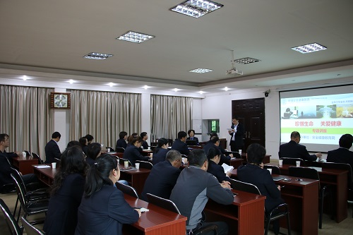 陆勤华主任主要讲授了现场紧急救护知识(人工呼吸、胸外按压)、健康的生活方式、空气污染的危害以及健康防护、职业病与慢性病的预防及治疗、心理健康素养提升,心理健康“四讲”活动等知识。培训内容深入浅出,授课方式生动形象、绘声绘色,全体人员认真学习、边听边记,积极参与互动。
